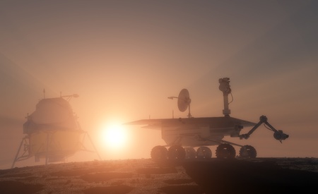 A rover on the surface of mars looking for signs of life. Science and exploration 3D illustration.