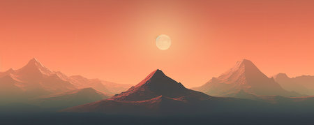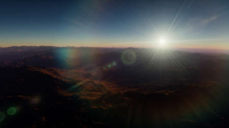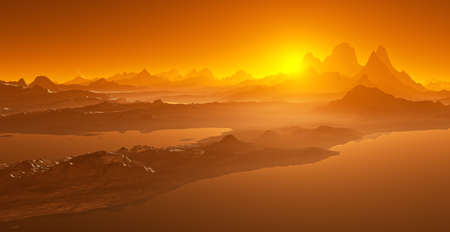 Landscape of the mountains at sunset. Computer generated 3D illustration.