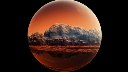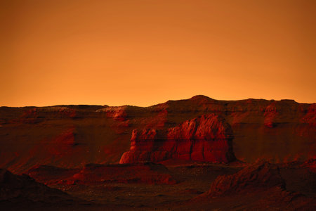 Red and orange Martian Mountains and Desert Landscape of the Planet Mars.