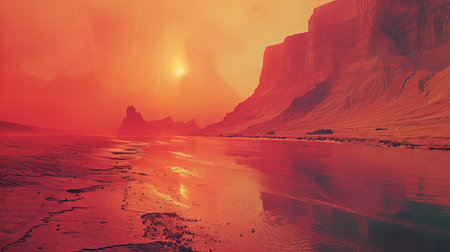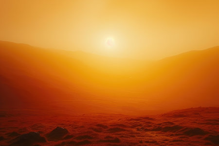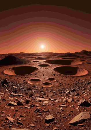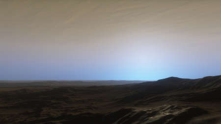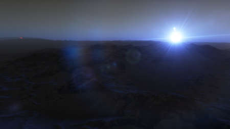 Sunset on Mars, Martian landscape.