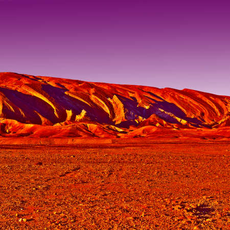 Colorful rocky hills of the Negev Desert in Israel. Breathtaking landscape and nature of the Middle East at sunset