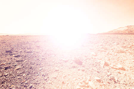 Sunset over the Stony Desert in Israel, Vintage Style Toned Picture