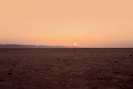 Beautiful sunrise over a salt lake in the Sahara Desert.