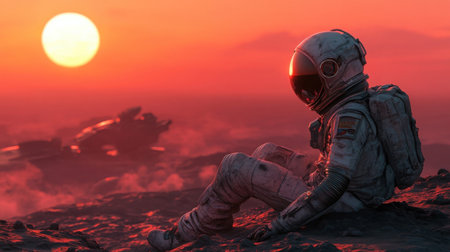 Extremely detailed and realistic high resolution 3d image of an Astronaut on martian like landscape