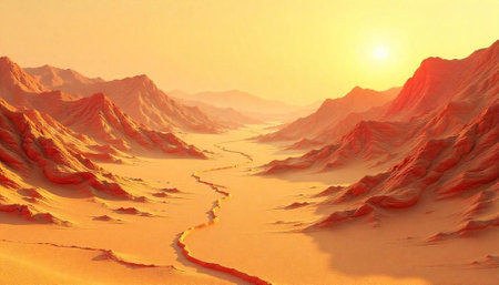 Cinematic view of a breathtaking desert landscape with vibrant colors and dramatic contrasts