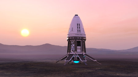 Sunset on Mars. Martian landscape. 3D illustration
