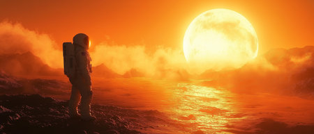 Astronaut and moonwalker on the planet.
