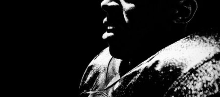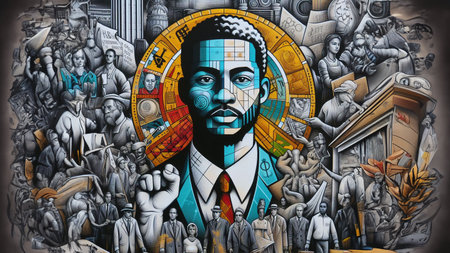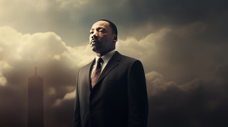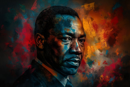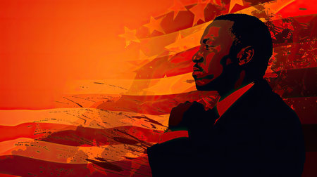 A black man on an abstract background with an American flag. Martin Luther King Day.