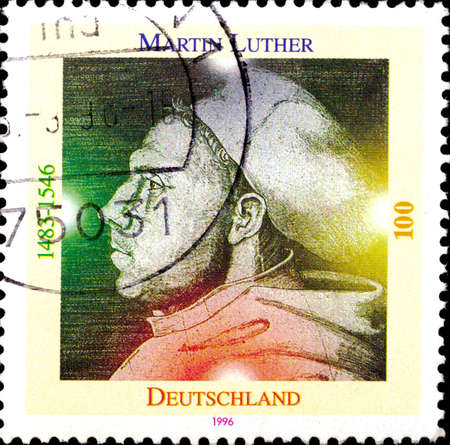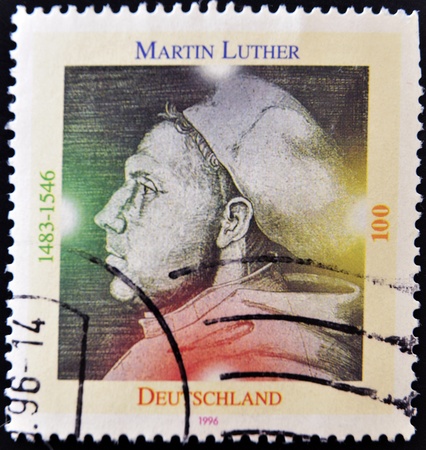GERMANY- CIRCA 1996: A stamp printed by Germany, shows Martin Luther, circa 1996.