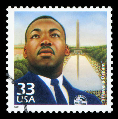UNITED STATES OF AMERICA - CIRCA 1999: Stamp printed in USA dedicated to celebrate the century 1960s, shows Martin Luther King, circa 1999