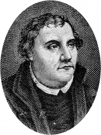 Engraving of Martin Luther, 1483 - 1546, leader of the Reformation in Germany, by an unknown artist, published in Daniel and the Revelation by Uriah Smith, Signs Publishing Company Limited, 1909