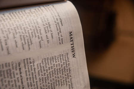 Close up of Holy Bible book with text in it. Shallow depth of field.