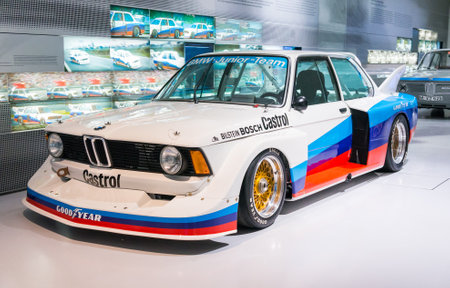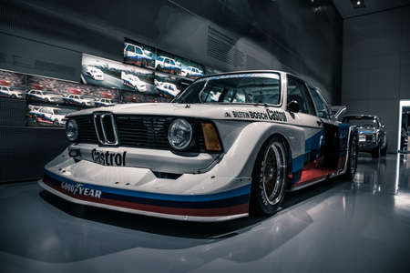 Munich/ Germany - May, 24 2019:BMW 320i E21 classic racing sport 1970s winner car in BMW Museum/ BMW Welt