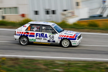 San Marino: 2010 09 01 Rally free event Lancia Delta HF Integrale racing on asphalt stage. High quality photo
