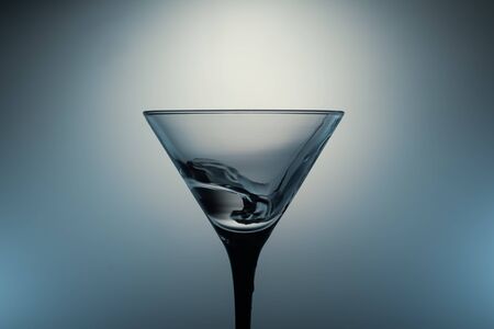 Martini glass with water splash on glowing background. transparent cocktail