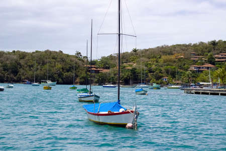 yachts off the tropical coast of the island