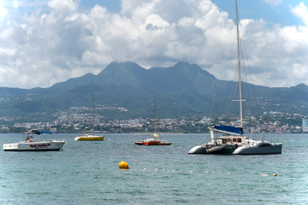 Fort-de-France, Martinique - December 19, 2016: Cityscape in cloudy weather of Fort-de-France, Martinique, Lesser Antilles, West Indies, Caribbean. View from the cruise ship.