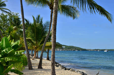 The palm trees on Caribbean beach, Martinique island.