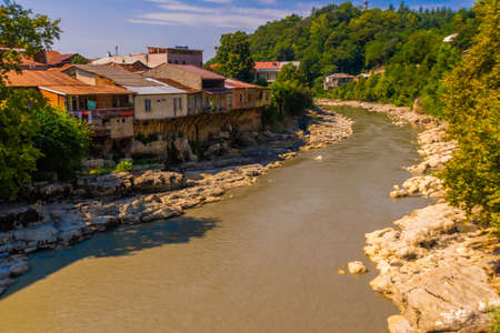 Landscape and view of the green river. River in Martvili, Samegrelo. Landscape of the green river.