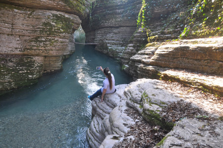 A woman sits at the Small Sandripshsky Canyon. Abkhazia