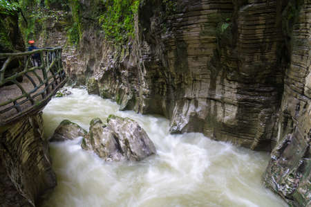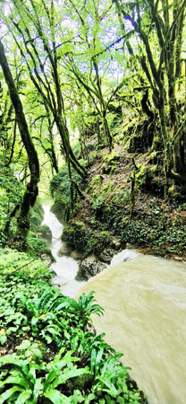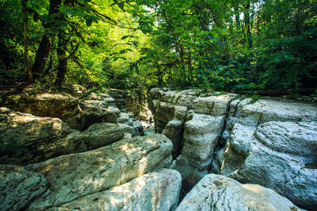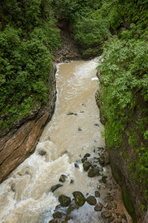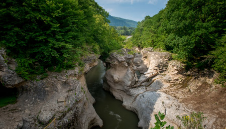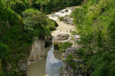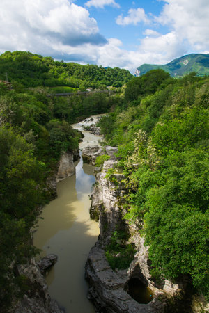 Martvili canyon in Georgia. Beautiful natural canyon with view of the mountain river Abasha