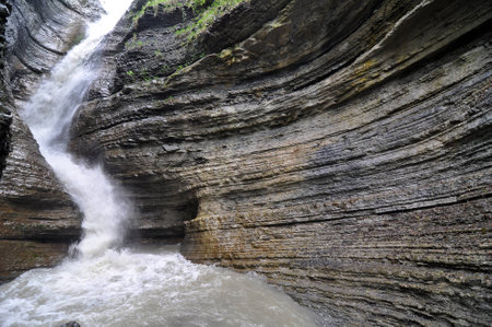 Martvili canyon in Georgia. Beautiful natural canyon and amazing waterfall of the mountain river