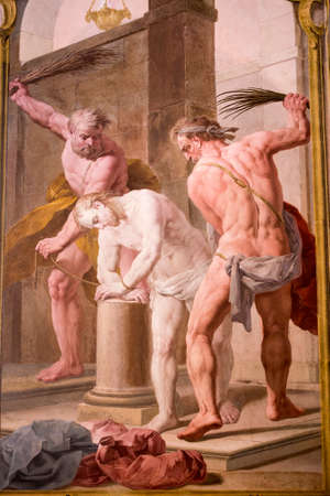Fresco in St Paul's church: St Paul's martyrdom. France.