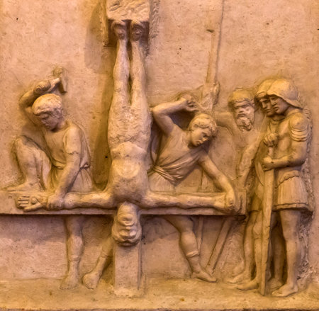 VIENNA, AUSTRIA - MAY 20, 2017: The Deposition of Christ, ancient marble statue in the baroque church of Saint Michael (michaelerkirche) in Vienna, Austria, on may 20, 2017