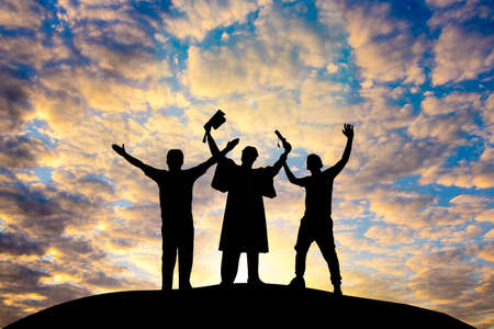Silhouette some zombies on the cemetery walking around at sunset. Horror Halloween concept. Selective focus
