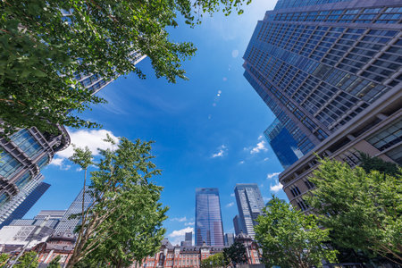 blue sky and skyscrapers. Shooting Location: Chiyoda Ward, Tokyo