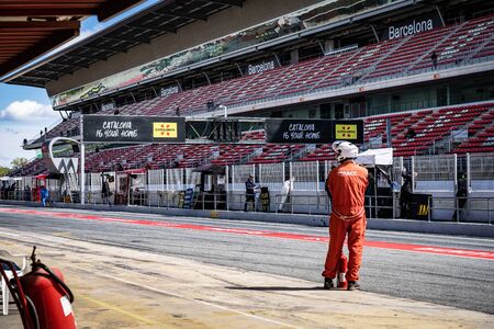 F1 World Championship. Team Formula 1 Test Day. Formula One Grand Prix. International Circuit. Team of Formula One team prepare to start the first Test.