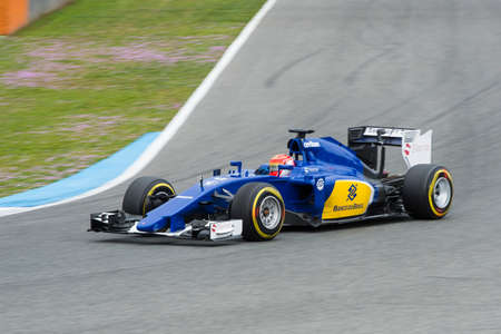 JEREZ DE LA FRONTERA, SPAIN - FEBRUARY 02: Felipe Nasr, pilot of the team Sauber, in test Formula 1 in Circuito de Jerez on feb 01, 2015 in Jerez de la frontera.
