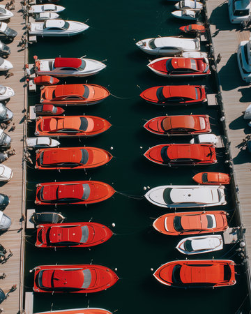 Generative AI : Aerial view of boats docked at Fanari port East Macedonia and Thrace Greece