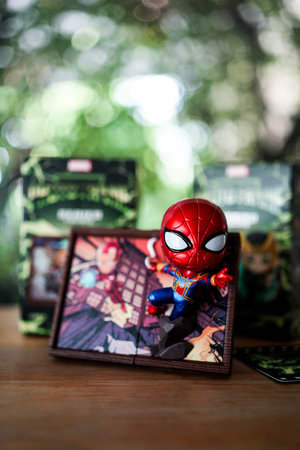 Bangkok, Thailand - November 11, 2024 : Spider man, Frame Series Figures from Pop Mart shop. Marvel x Pop Mart