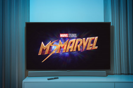 Ms Marvel TV series on big tv screen. Ms. Marvel television show at home