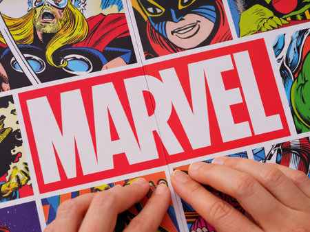 Tambov, Russian Federation - December 19, 2023 Woman hands opening a Marvel box
