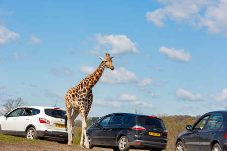 Spring Grove, APR 23 2016 - Close up shot of Giraffe walking in the beautiful West Midland Safari Park