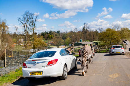 Spring Grove, APR 23 2016 - Close up shot of cute zebra in the beautiful West Midland Safari Park