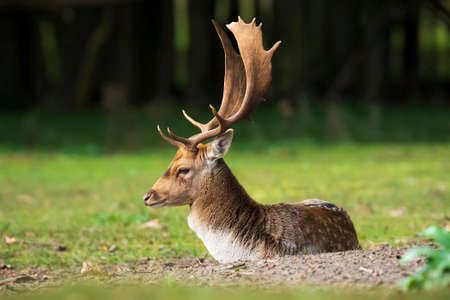 Red deer fallow deer majestically powerful animal in the forest. Animals in the natural forest. The wild nature landscape. Deer garden.