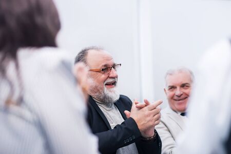 group of people listening on the conference, rear viev, selective focus
