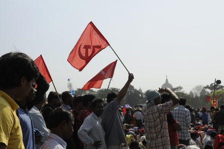 KOLKATA- FEBRUARY 13: People of Kolkata march with banners and placards during a political rally in Kolkata, India on February 13, 2011.