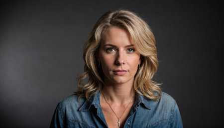 Portrait of a beautiful woman with long wavy blond hair.