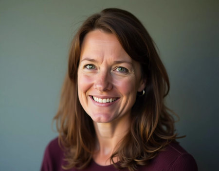 A woman with curly hair smiling warmly at the camera.