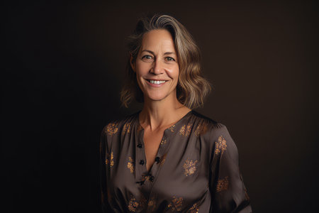 Portrait of beautiful mature woman smiling at camera isolated on black background