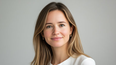 Portrait of a woman with long, silky hair and a soft smile, natural light enhancing her features, warm and inviting atmosphere
