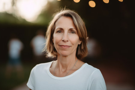 Portrait of a smiling middle-aged woman looking at camera outdoors