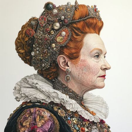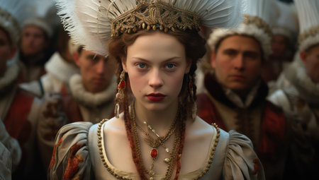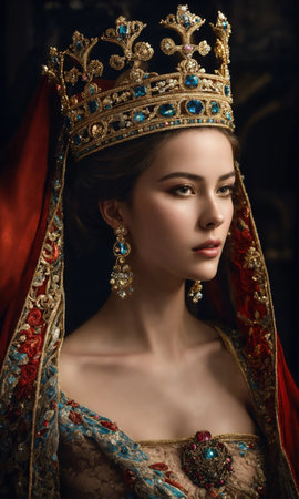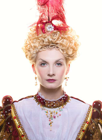 Portrait of a beautiful young woman in the image of Queen Elizabeth