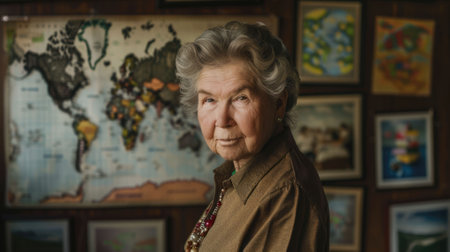 Portrait Old Female Looking At Camera Sitting At Home