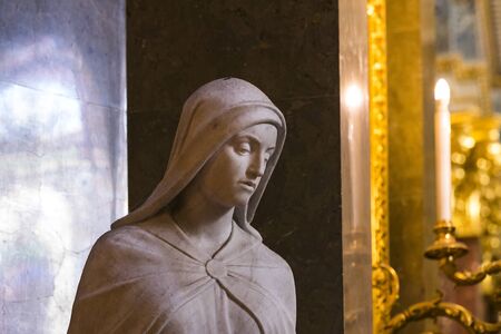 Statue in stone of Virgin Mary .Statues of Holy Women in Roman Catholic Church.Silhouette of virgin Mary statue .