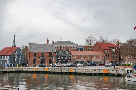 Historic city of Annapolis on Maryland's Chesapeake Bay. various architectural styles in Old Town district.
